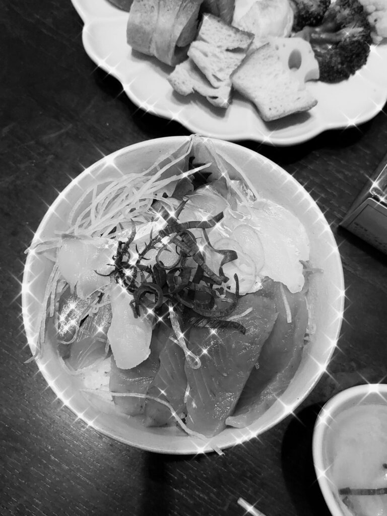 娘の大好きなマグロ丼にしました。スーパー道の駅で夕方半額になっていました♡半額だとは内緒ですが・・・・
