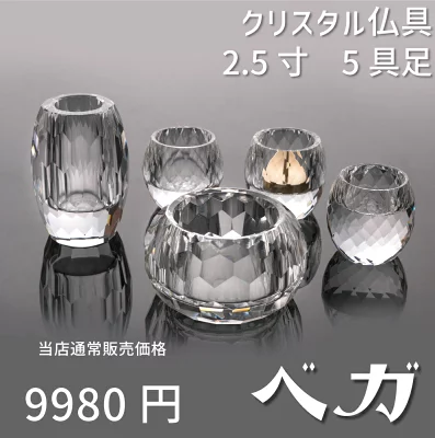 【最強配送対応】仏具 セット ベガ クリア 5具足 2.5寸 クリスタル仏具 モダン仏具 セット おしゃれ 香炉 花立 蝋燭立て 仏飯器 茶湯器